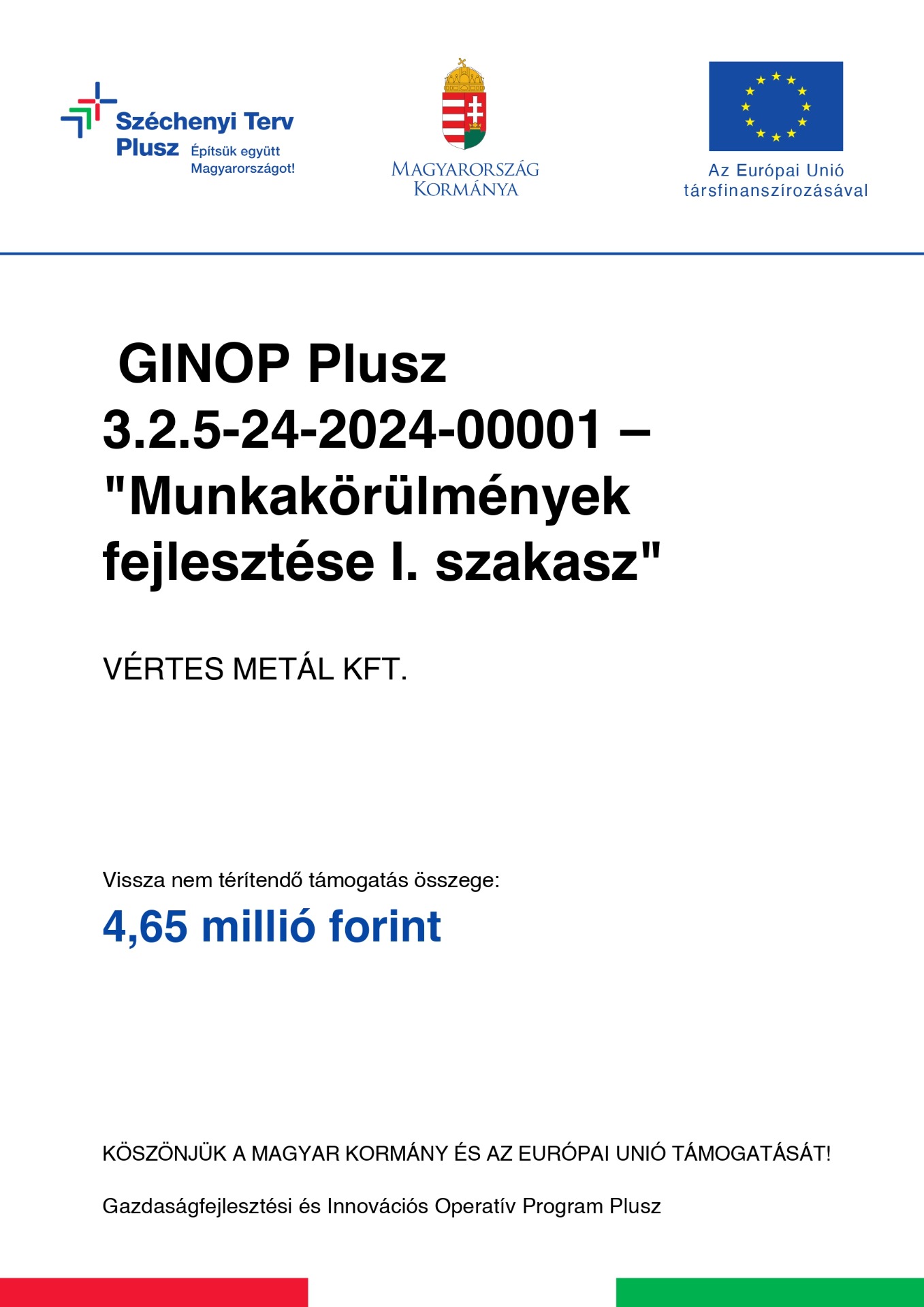 Plusz 3.2.5-24-2024-00001 – "Munkakörülmények fejlesztése I. szakasz"